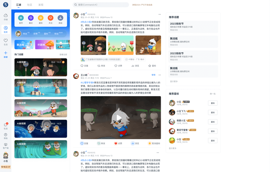 提供江湖、社区等多元化的个人展示及兴趣社交服务。